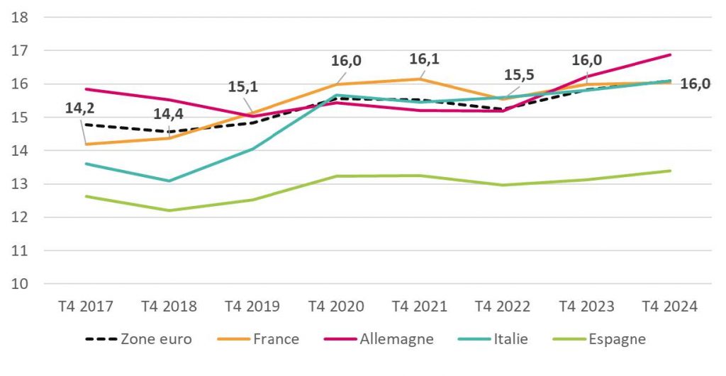 (2) Comparaison du ratio de solvabilité (CET1) des groupes bancaires européens – source : BCE