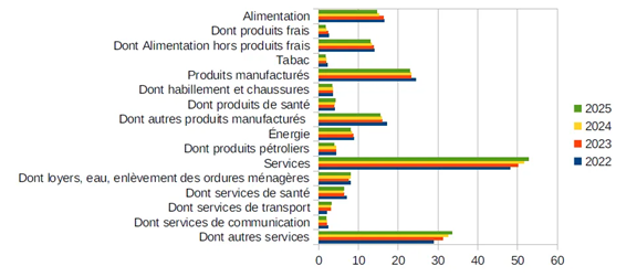 L’inflation se définit comme la hausse durable et généralisée des prix des biens et des services. On évalue l’inflation à partir des prix d’un panier de biens et de services représentatifs de la consommation des ménages.